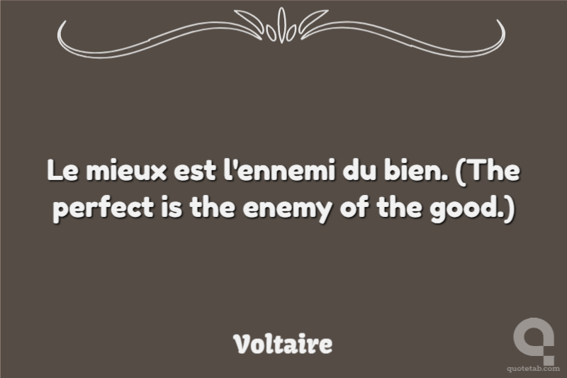 Le mieux est l'ennemi du bien. (The perfect is the enemy of the good.)