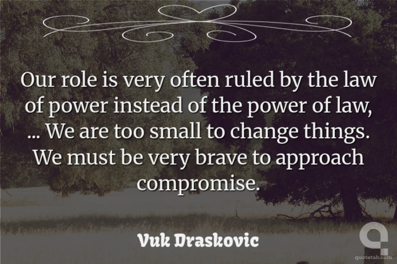 Our role is very often ruled by the law of power instead of the power of law, ... We are too small to change things. We must be very brave to approach compromise.