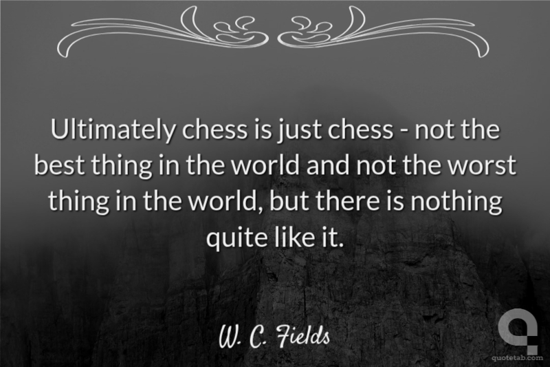 Ultimately chess is just chess - not the best thing in the world and not the worst thing in the world, but there is nothing quite like it.