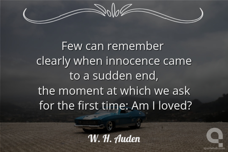 Few can remember clearly when innocence came to a sudden end, the moment at which we ask for the first time: Am I loved?