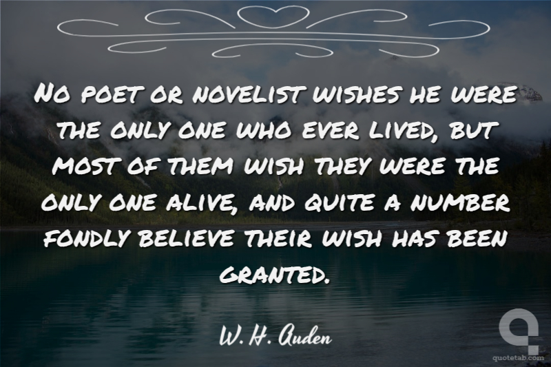 No poet or novelist wishes he were the only one who ever lived, but most of them wish they were the only one alive, and quite a number fondly believe their wish has been granted.