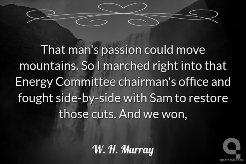 That man's passion could move mountains. So I marched right into that Energy Committee chairman's office and fought side-by-side with Sam to restore those cuts. And we won,