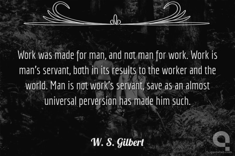 Work was made for man, and not man for work. Work is man's servant, both in its results to the worker and the world. Man is not work's servant, save as an almost universal perversion has made him such.