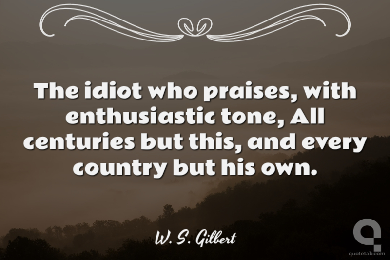 The idiot who praises, with enthusiastic tone, All centuries but this, and every country but his own.
