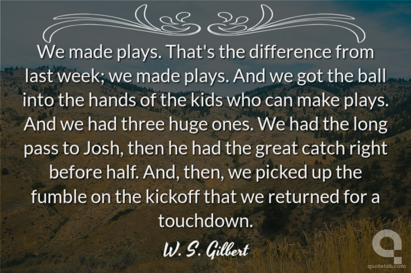 We made plays. That's the difference from last week; we made plays. And we got the ball into the hands of the kids who can make plays. And we had three huge ones. We had the long pass to Josh, then he had the great catch right before half. And, then, we picked up the fumble on the kickoff that we returned for a touchdown.