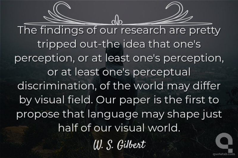 The findings of our research are pretty tripped out-the idea that one's perception, or at least one's perception, or at least one's perceptual discrimination, of the world may differ by visual field. Our paper is the first to propose that language may shape just half of our visual world.