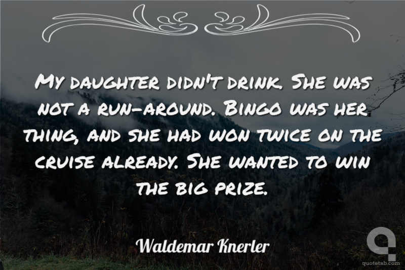My daughter didn't drink. She was not a run-around. Bingo was her thing, and she had won twice on the cruise already. She wanted to win the big prize.