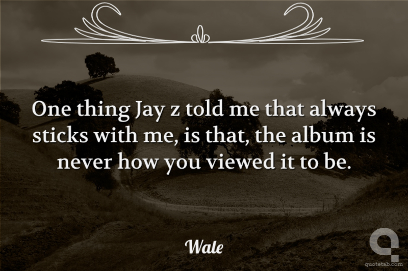 One thing Jay z told me that always sticks with me, is that, the album is never how you viewed it to be.