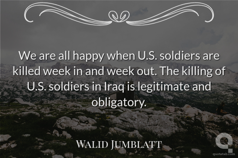 We are all happy when U.S. soldiers are killed week in and week out. The killing of U.S. soldiers in Iraq is legitimate and obligatory.