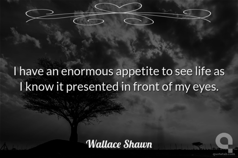 I have an enormous appetite to see life as I know it presented in front of my eyes.