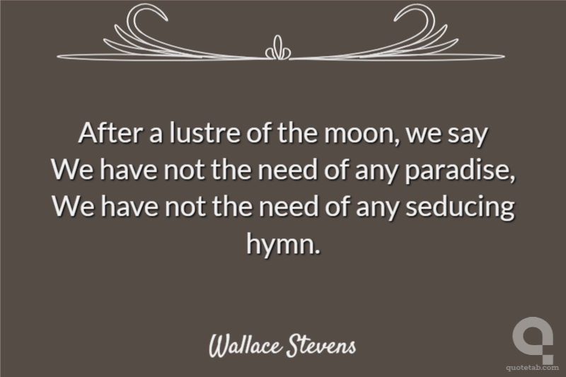 After a lustre of the moon, we say We have not the need of any paradise, We have not the need of any seducing hymn.