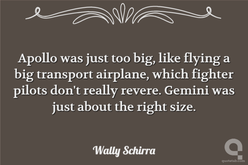 Apollo was just too big, like flying a big transport airplane, which fighter pilots don't really revere. Gemini was just about the right size.