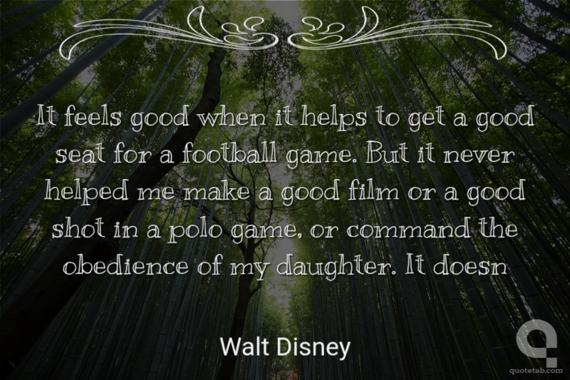 It feels good when it helps to get a good seat for a football game. But it never helped me make a good film or a good shot in a polo game, or command the obedience of my daughter. It doesn