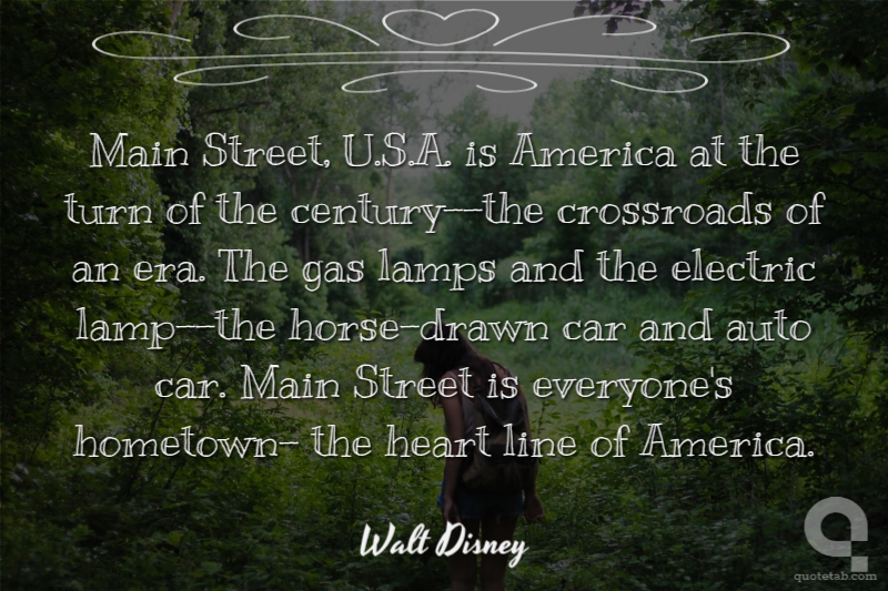 Main Street, U.S.A. is America at the turn of the century--the crossroads of an era. The gas lamps and the electric lamp--the horse-drawn car and auto car. Main Street is everyone's hometown- the heart line of America.