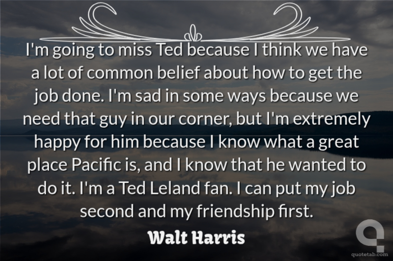 I'm going to miss Ted because I think we have a lot of common belief about how to get the job done. I'm sad in some ways because we need that guy in our corner, but I'm extremely happy for him because I know what a great place Pacific is, and I know that he wanted to do it. I'm a Ted Leland fan. I can put my job second and my friendship first.