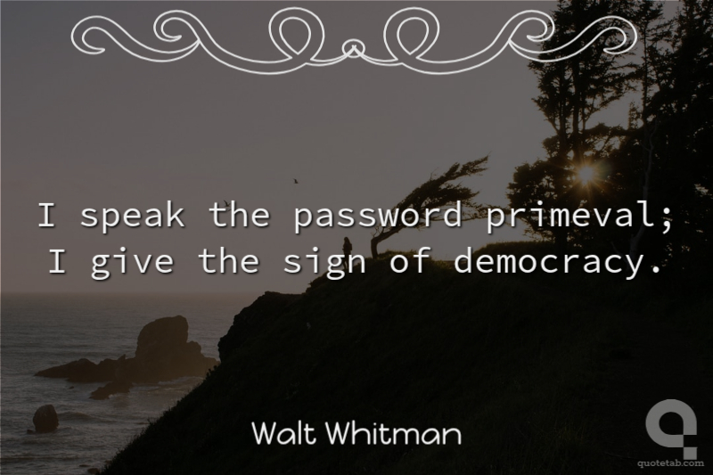 What is commonest and cheapest and nearest and easiest is Me, Me going in for my chances, spending for vast returns, Adorning myself to bestow myself on the first that will take me, Not asking the sky to come down to my goodwill, Scattering if freely forever.
