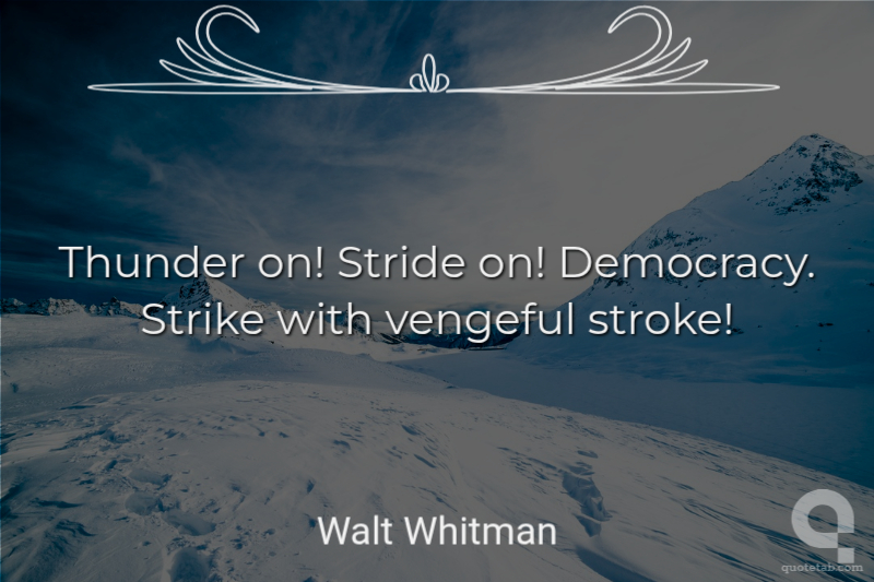 Thunder on! Stride on! Democracy. Strike with vengeful stroke!