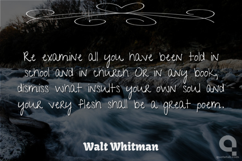 Re examine all you have been told in school and in church Or in any book, dismiss what insults your own soul and your very flesh shall be a great poem.