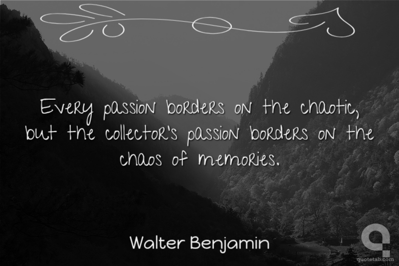 Every passion borders on the chaotic, but the collector's passion borders on the chaos of memories.