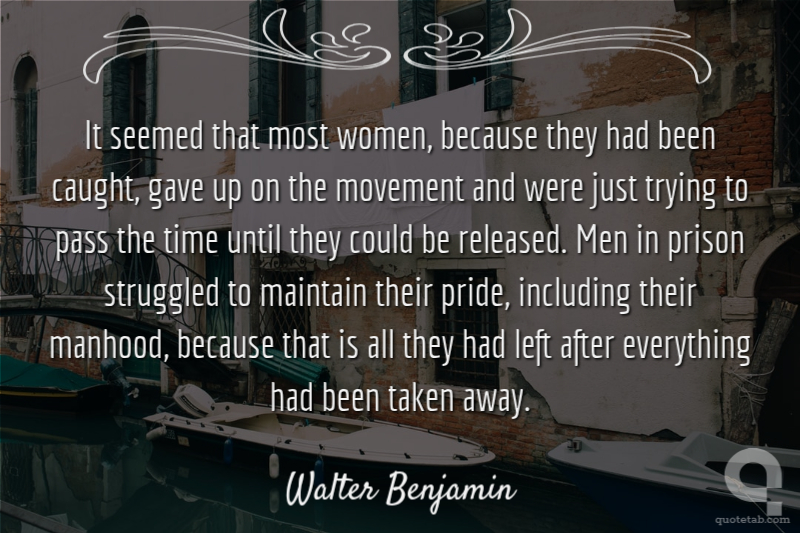 It seemed that most women, because they had been caught, gave up on the movement and were just trying to pass the time until they could be released. Men in prison struggled to maintain their pride, including their manhood, because that is all they had left after everything had been taken away.