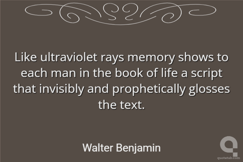 Like ultraviolet rays memory shows to each man in the book of life a script that invisibly and prophetically glosses the text.