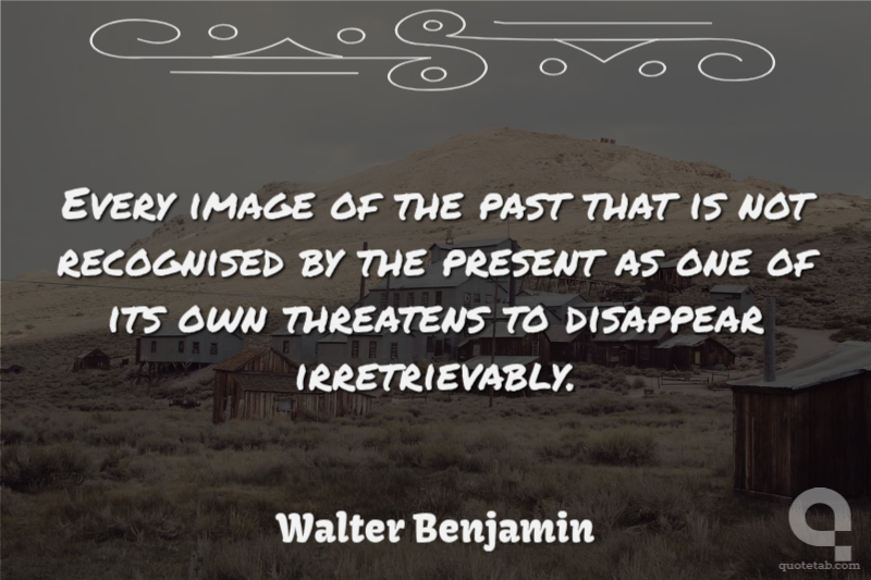 Every image of the past that is not recognised by the present as one of its own threatens to disappear irretrievably.