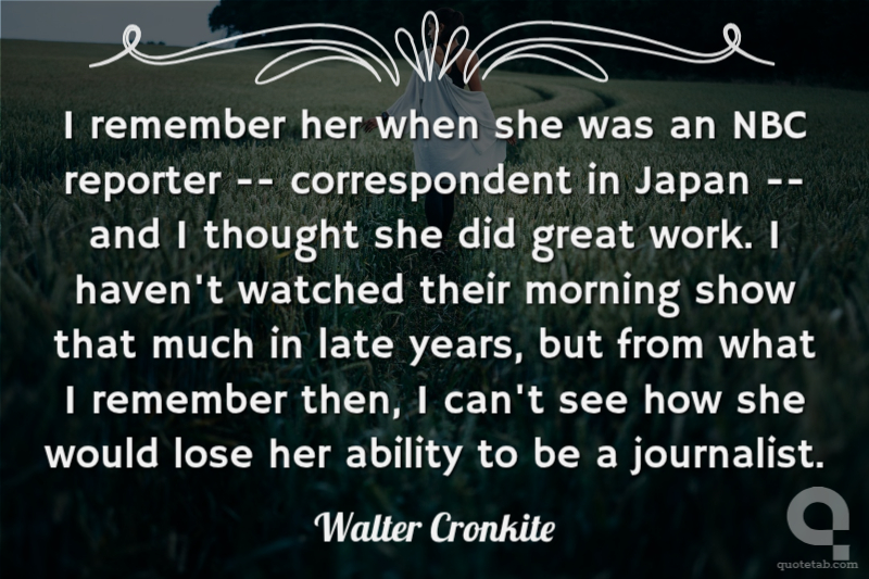 I remember her when she was an NBC reporter -- correspondent in Japan -- and I thought she did great work. I haven't watched their morning show that much in late years, but from what I remember then, I can't see how she would lose her ability to be a journalist.