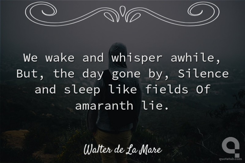 We wake and whisper awhile, But, the day gone by, Silence and sleep like fields Of amaranth lie.