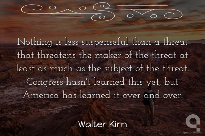 Nothing is less suspenseful than a threat that threatens the maker of the threat at least as much as the subject of the threat. Congress hasn't learned this yet, but America has learned it over and over.