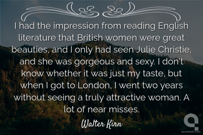 I had the impression from reading English literature that British women were great beauties, and I only had seen Julie Christie, and she was gorgeous and sexy. I don't know whether it was just my taste, but when I got to London, I went two years without seeing a truly attractive woman. A lot of near misses.