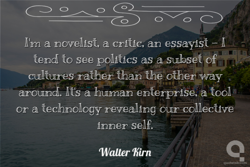 I'm a novelist, a critic, an essayist - I tend to see politics as a subset of cultures rather than the other way around. It's a human enterprise, a tool or a technology revealing our collective inner self.