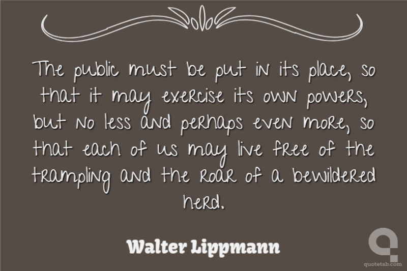 The public must be put in its place, so that it may exercise its own powers, but no less and perhaps even more, so that each of us may live free of the trampling and the roar of a bewildered herd.