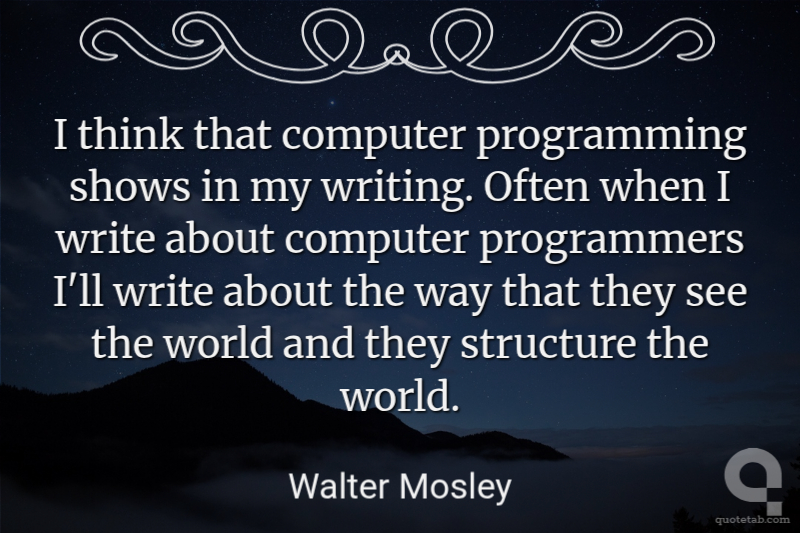 I think that computer programming shows in my writing. Often when I write about computer programmers I'll write about the way that they see the world and they structure the world.