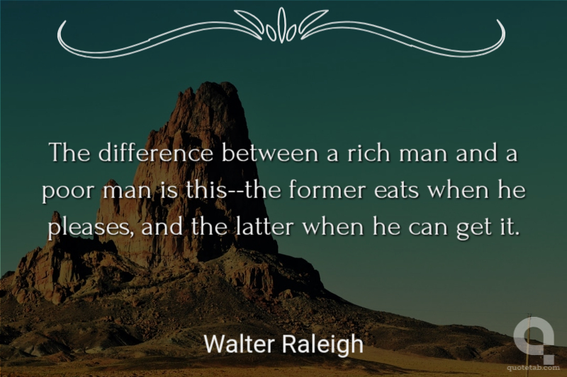 The difference between a rich man and a poor man is this--the former eats when he pleases, and the latter when he can get it.