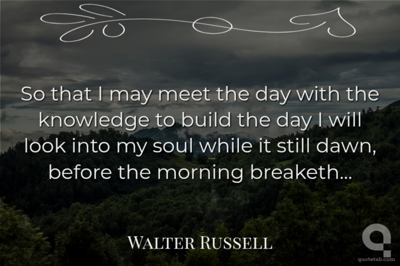 So that I may meet the day with the knowledge to build the day I will look into my soul while it still dawn, before the morning breaketh...