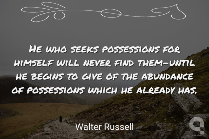 He who seeks possessions for himself will never find them-until he begins to give of the abundance of possessions which he already has.
