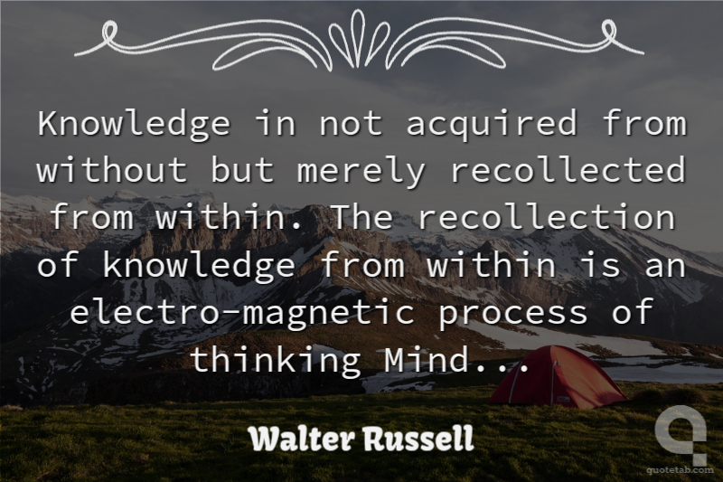 Knowledge in not acquired from without but merely recollected from within. The recollection of knowledge from within is an electro-magnetic process of thinking Mind...