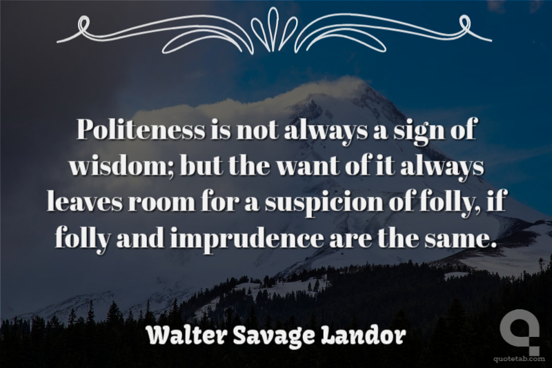 Politeness is not always a sign of wisdom; but the want of it always leaves room for a suspicion of folly, if folly and imprudence are the same.