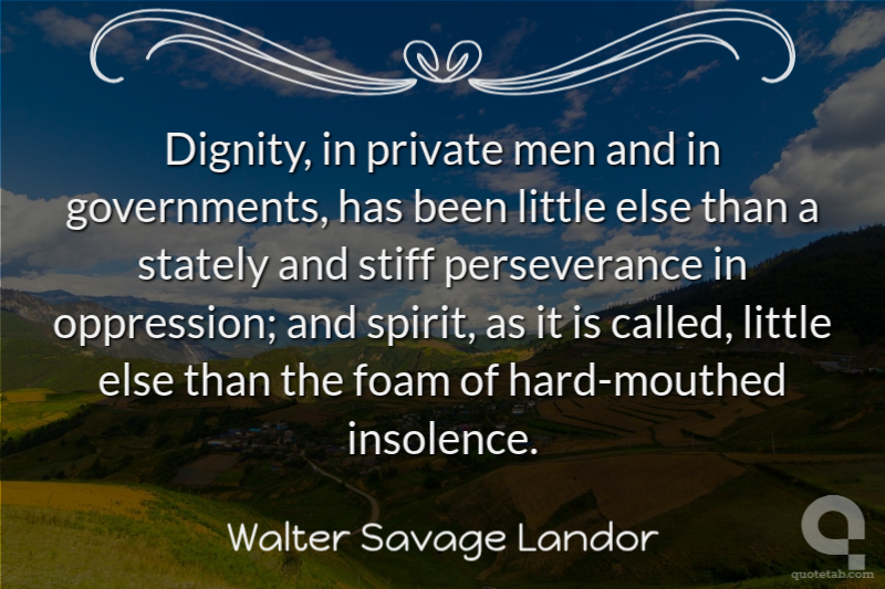 Dignity, in private men and in governments, has been little else than a stately and stiff perseverance in oppression; and spirit, as it is called, little else than the foam of hard-mouthed insolence.