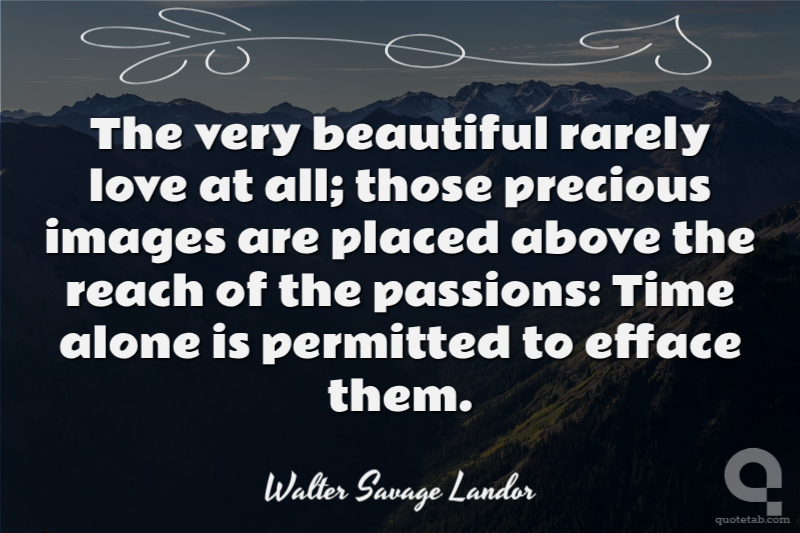 The very beautiful rarely love at all; those precious images are placed above the reach of the passions: Time alone is permitted to efface them.