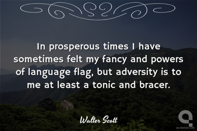 In prosperous times I have sometimes felt my fancy and powers of language flag, but adversity is to me at least a tonic and bracer.