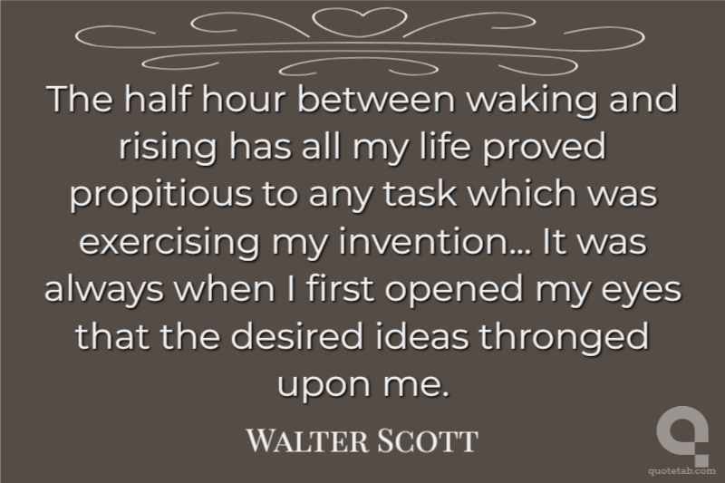 The half hour between waking and rising has all my life proved propitious to any task which was exercising my invention... It was always when I first opened my eyes that the desired ideas thronged upon me.
