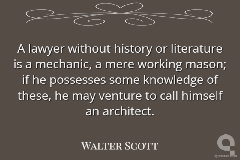 A lawyer without history or literature is a mechanic, a mere working mason; if he possesses some knowledge of these, he may venture to call himself an architect.