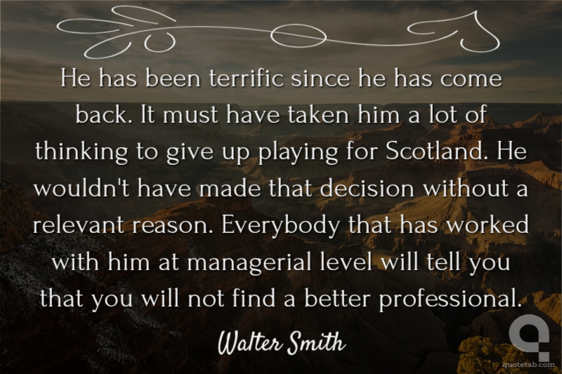 He has been terrific since he has come back. It must have taken him a lot of thinking to give up playing for Scotland. He wouldn't have made that decision without a relevant reason. Everybody that has worked with him at managerial level will tell you that you will not find a better professional.