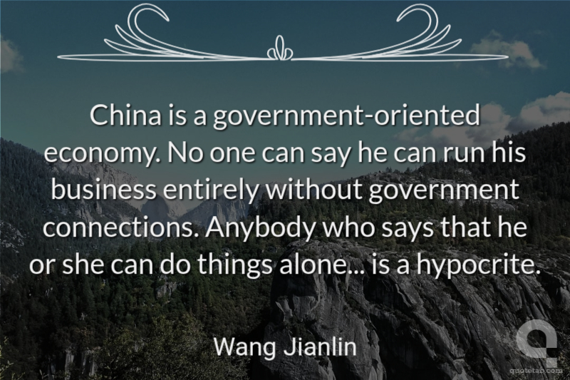 China is a government-oriented economy. No one can say he can run his business entirely without government connections. Anybody who says that he or she can do things alone... is a hypocrite.