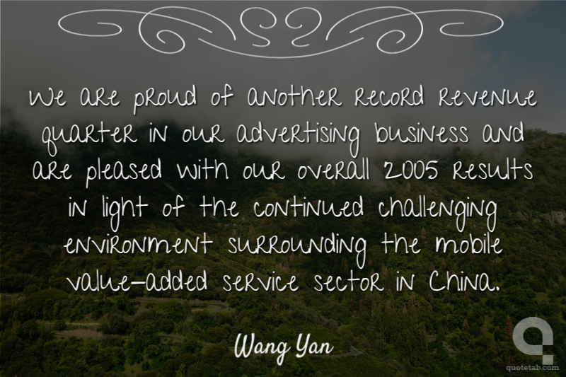 We are proud of another record revenue quarter in our advertising business and are pleased with our overall 2005 results in light of the continued challenging environment surrounding the mobile value-added service sector in China.