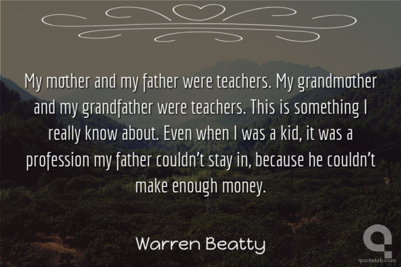 My mother and my father were teachers. My grandmother and my grandfather were teachers. This is something I really know about. Even when I was a kid, it was a profession my father couldn't stay in, because he couldn't make enough money.