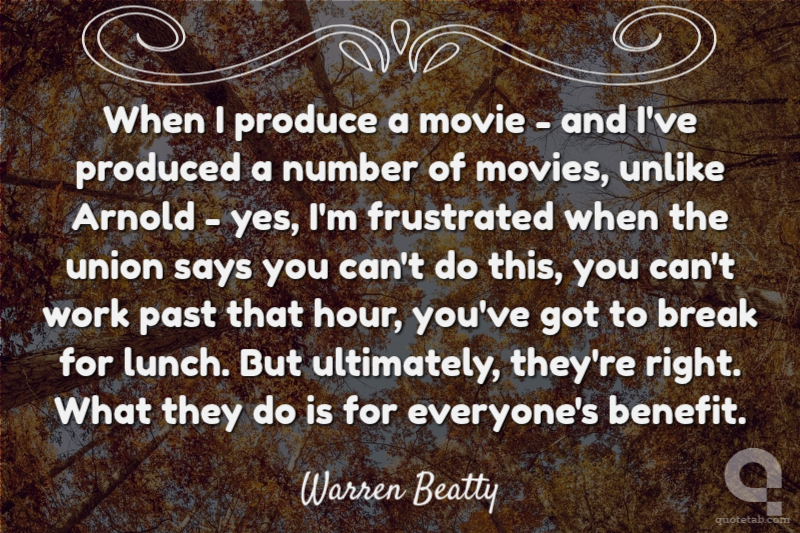 When I produce a movie - and I've produced a number of movies, unlike Arnold - yes, I'm frustrated when the union says you can't do this, you can't work past that hour, you've got to break for lunch. But ultimately, they're right. What they do is for everyone's benefit.