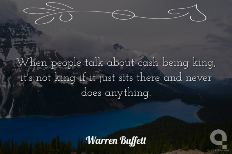 When people talk about cash being king, it's not king if it just sits there and never does anything.