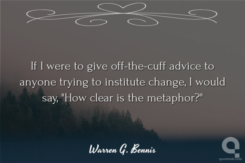 If I were to give off-the-cuff advice to anyone trying to institute change, I would say, "How clear is the metaphor?"
